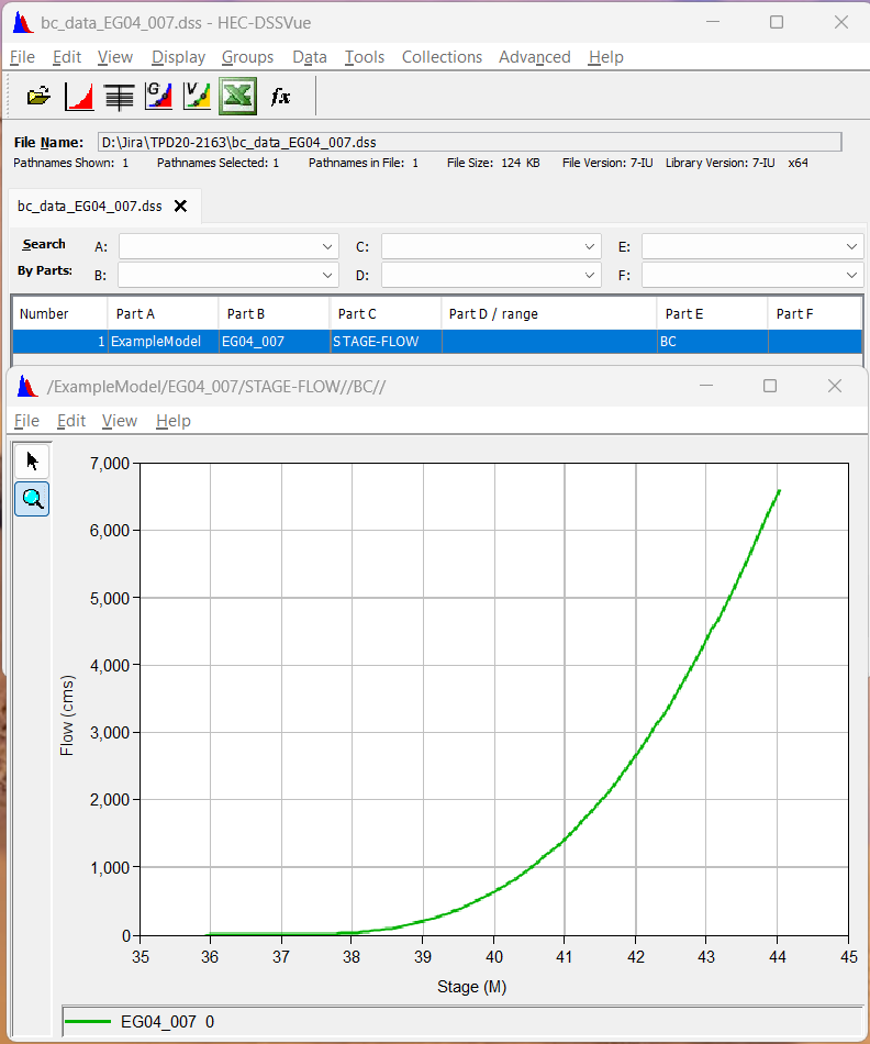 TUFLOW now supports reading non-time-series curves stored as “paired data” from HEC-DSS files for rating curves or other non-timed data. Paired curves are accessed the same as time-series curves as described in the TUFLOW User Manual.