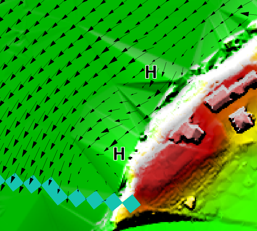 Buildings may also be “removed” from the 2D domain by categorising the buildings as “Land” cells (see Section 7.2.2) or raising the Zpt elevations above the predicted flood level (see Section 7.2.6.2). This method may be appropriate when the building/s have been designed to not flood. In this case, care should be taken to ensure the chosen cell size is able to appropriately represent the area of the building and the storage ‘removed’ from the floodplain. Representing buildings in this fashion will not take into account any below ground storage, such as that provided by underground car parks or basement properties. If using a direct rainfall approach (rain on grid), this method is most likely not suitable. Any land (inactive) cells will have no rainfall applied, meaning the flow volume will be incorrect, artificially high cells (e.g. 10m above ground levels) may cause stability issues as flows exit the building.