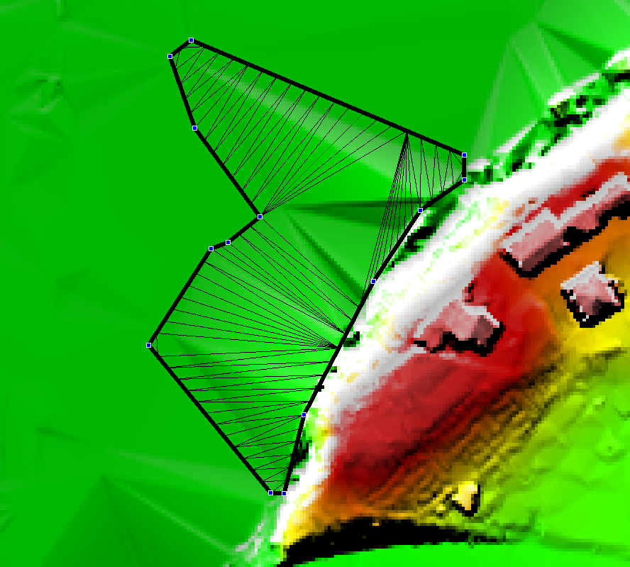 | Create TIN Zpts | Useful for having TUFLOW create a TIN using polygons for TIN boundaries and points and lines within the polygons to create the TIN. If no points are snapped to the perimeter vertices of a polygon, the elevations around the polygon’s perimeter are merged with the current Zpt values. The resulting TIN can optionally be exported to SMS and 12D TIN formats. |
