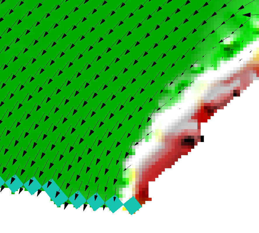 Inactive cells are cells that are totally removed from the computation. Maximising the area of inactive cells reduces computation time and output file sizes. For a fixed grid 2D domain, inactive cells still consume memory during a simulation, as these domains are stored on a row column rectangular grid. For a quadtree grid, inactive cells will consume temporary memory (CPU RAM) during model startup, but do not consume memory (CPU or GPU) during the simulation. |