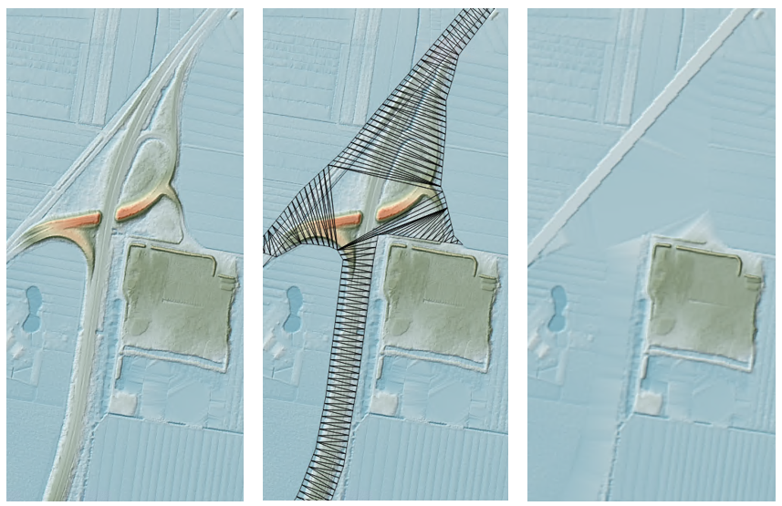 - Sometimes there is a need to remove cut and fill works from the topography. For example, model calibration often requires the removal of infrastructure, such as levees, road embankments and developments that may not have existed at the time of the historic event to back date the topography within the model. This is easily done using Read GIS Z Shape by simply digitising polygons around the various features.