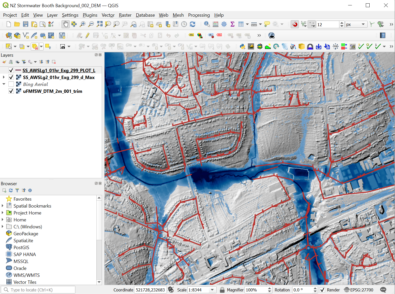- Working directly in GIS means model input data is geographically referenced, not 2D grid referenced, this supports workflow efficient model updates (such as changes to the model 2D cell size specification or boundary condition locations).