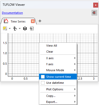 - Time-series plot - show current time: This option can be found under the time-series plot context menu. The vertical time indicator line is also interactable and can be dragged to change the current time.