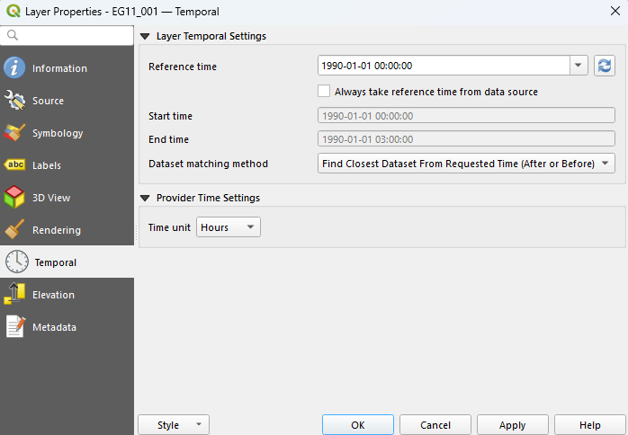 The reference time determines the isodate values shown for the "Animation Range" in the Temporal Controller window. If the NetCDF mesh result does not have an inherent reference time, the following hierarchy is used to set the reference time: