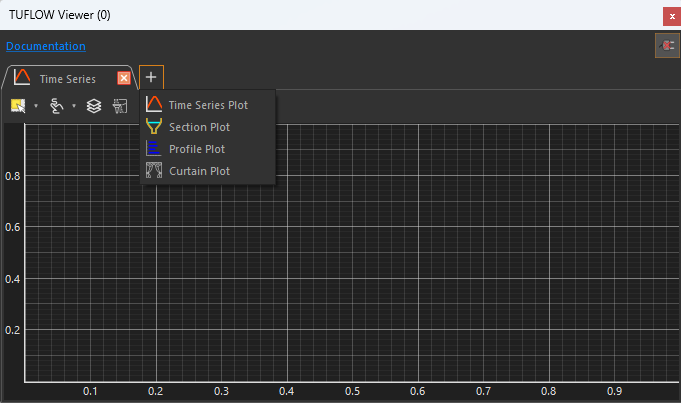 By default, the plot window will open with a Time Series Plot. A new Plotting Tab can be added by clicking on the '+' button on the tab strip and selecting the desired plot type from the dropdown menu.