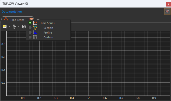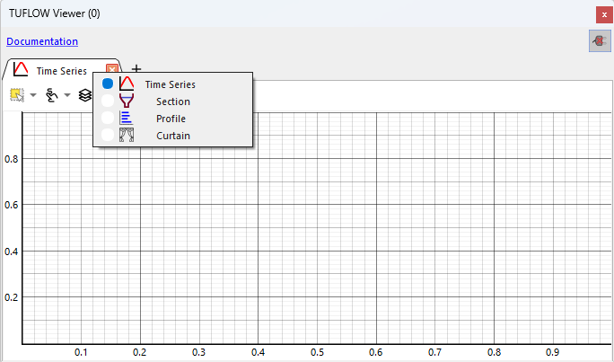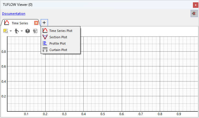 The TUFLOW Viewer plot window can be opened by clicking the time series icon found in the plugin toolbar.